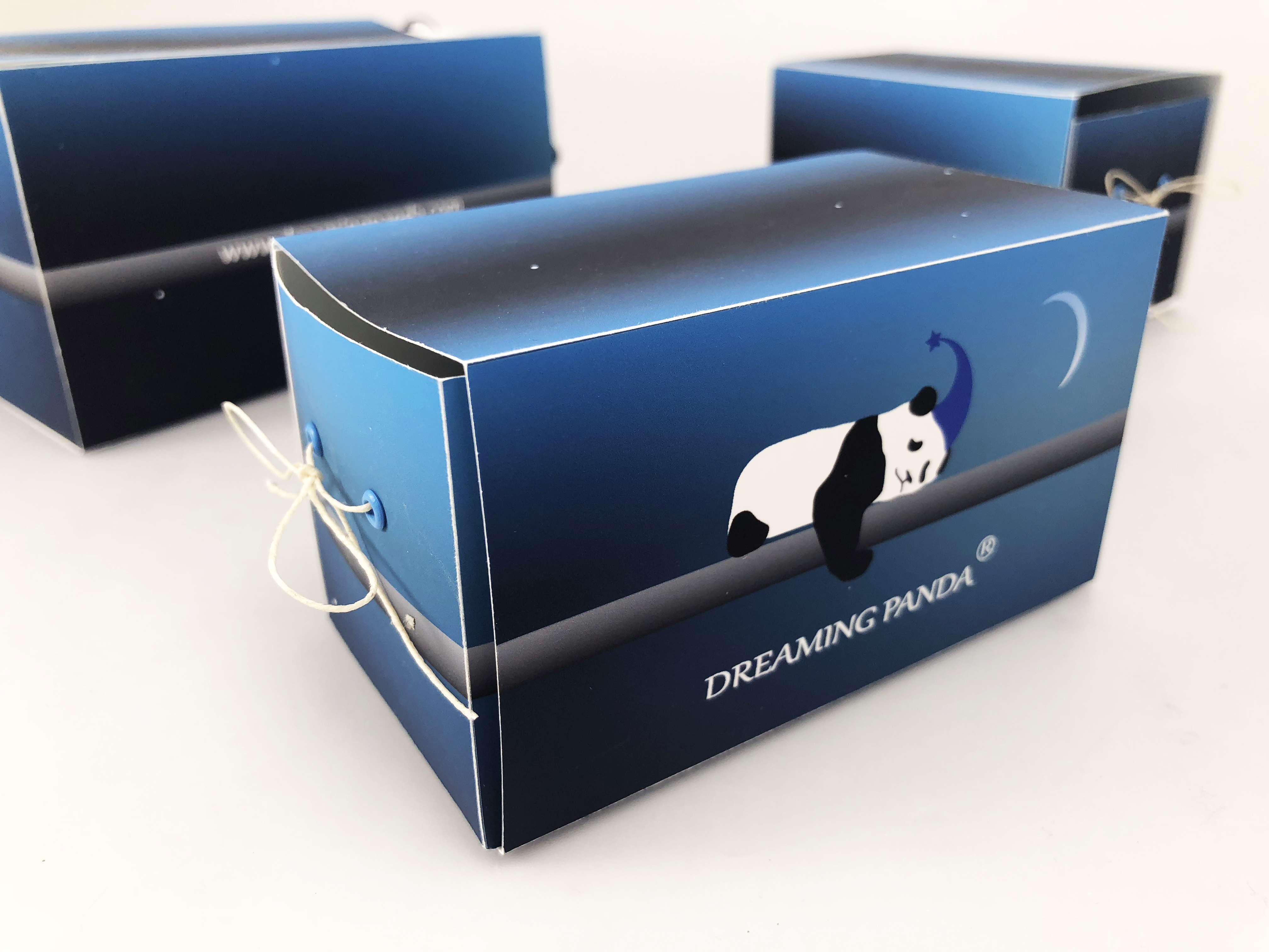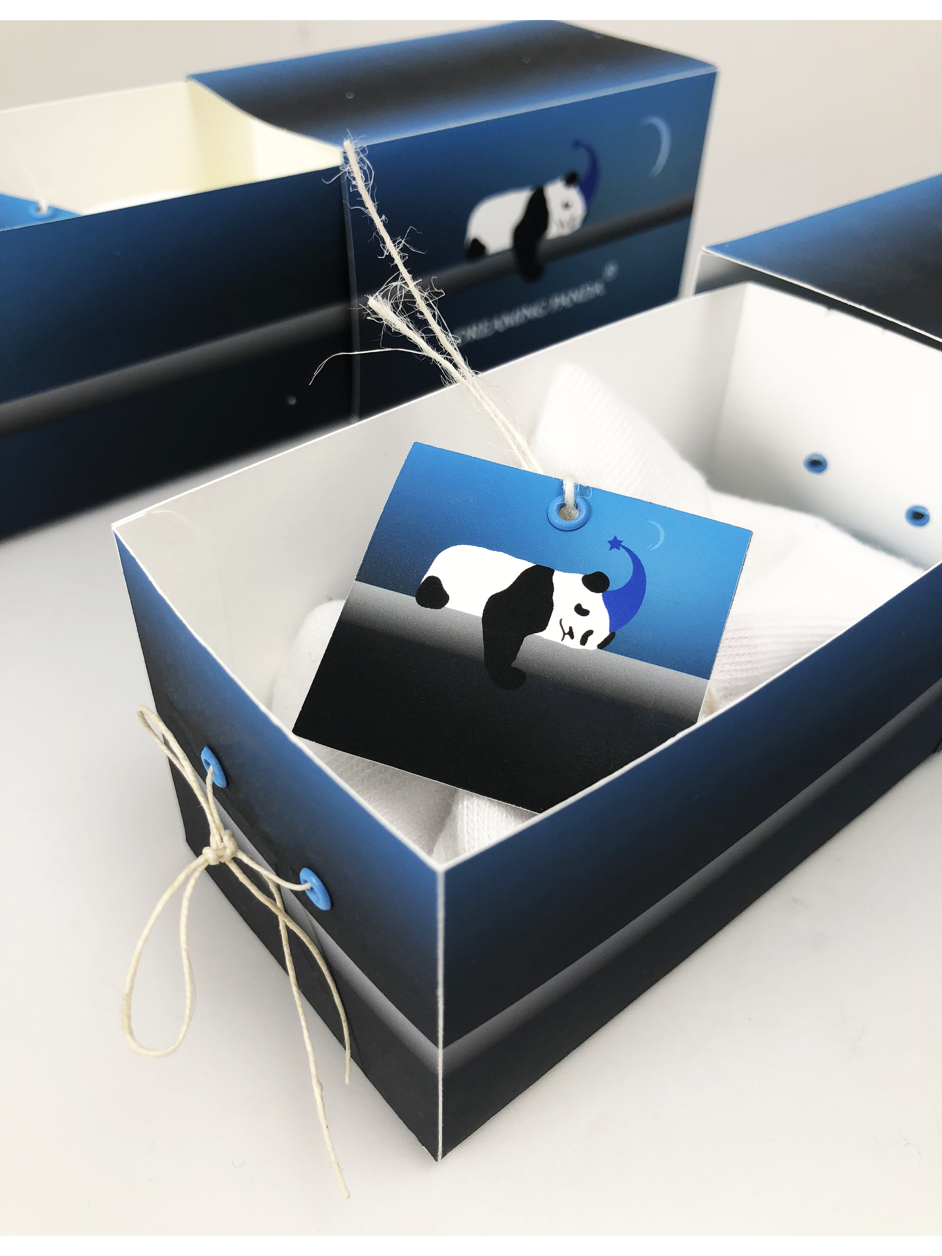 I chose to use the a baby panda for two reasons; because the largest, natural habitat for the panda is my home city of Chengdu and because pandas sleep 22 hours a day and never want to wake up. I drew this small panda wearing a nap cap and resting on a dark pole. He is framed by a dark blue night sky filled with stars and a soft moon and he is sleeping peacefully. I want the people who buy these pajamas to fill this relaxed and cozy.